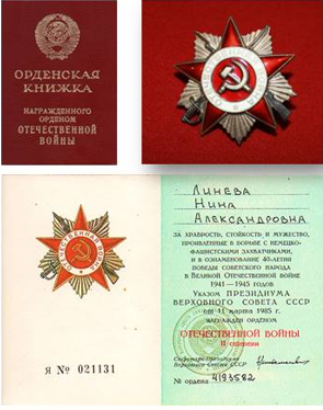 1938-1940г. г. Талановы Нерехта Ивановской обл.распоряжение нашей славной Рабоче-крестьянской Красной Армии». 22 июля 1941 года Нина Линёва добровольцем уходит на фронт. В начале сентября 1941г. в составе медсанбата попадает в плен на территории Орловской (теперь Брянской области). Её определили работать в больницу для советских военнопленных, организованную немцами в городе Стародуб. С октября месяца 1941г. в Стародубе начала работать подпольная организация «Смерть фашизму!». Нина стала членом подполья, которое было связано с партизанами. В течении 18 месяцев она передавала медикаменты партизанам, а от них получала вести с Большой земли. Связь наладилась. Нина работала заодно с врачом больницы Завалеем Леонидом Евгеньевичем. В траншею (условленное место) они переправляли пленных из больницы под видом умерших. Партизаны оттуда забирали красноармейцев в свой отряд. Такие спецоперации Нина проводила в месяц 2- 3 раза по 5- 6 человек, которых дальше переправляли в партизанский отряд. Это 180- 324 спасённые человеческие жизни.